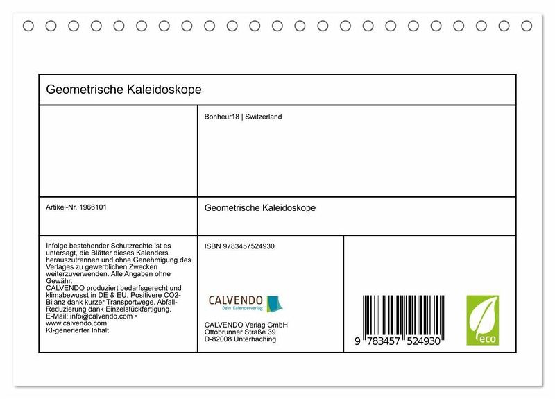 QUALITÄT - Hochwertiger Fotokalender mit 12 wunderschönen Motiven auf lichtbeständigem Bilderdruckpapier, robuste Spiralbindung.NACHHALTIG - deutliche Abfallreduzierung durch bedarfsgerechte Einzelstückfertigung, umweltfreundliches FSC-zertifiziertes Papier, Produktion in Deutschland, klimabewusste Logistik.PERFEKTES GESCHENK - Kalender für Freunde und Familie, für Kinder und Erwachsene, jung und alt, zu Weihnachten, Geburtstag oder zwischendurch.VIELFALT - Bildkalender in verschiedenen Formaten, z.B. DIN A5, DIN A4, DIN A3 sowie DIN A2. Ob Naturmotiv, Gemälde oder Fotos, ideal für ein persönliches Wohlfühlambiente.Die Schönheit der Natur als geometrische Gemälde verschaffen eine beruhigende Wirkung. von Autor(in): Kavodedition