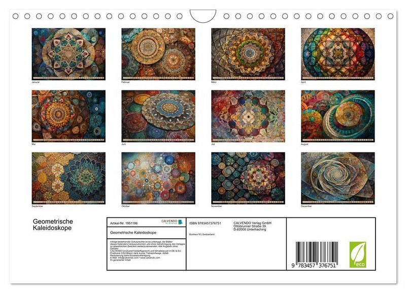 QUALITÄT - Hochwertiger Fotokalender mit 12 wunderschönen Motiven auf lichtbeständigem Bilderdruckpapier, robuste Spiralbindung mit Aufhängebügel.NACHHALTIG - deutliche Abfallreduzierung durch bedarfsgerechte Einzelstückfertigung, umweltfreundliches FSC-zertifiziertes Papier, Produktion in Deutschland, klimabewusste Logistik.PERFEKTES GESCHENK - Kalender für Freunde und Familie, für Kinder und Erwachsene, jung und alt, zu Weihnachten, Geburtstag oder zwischendurch.VIELFALT - Bildkalender in verschiedenen Formaten, z.B. DIN A5, DIN A4, DIN A3 sowie DIN A2. Ob Naturmotiv, Gemälde oder Fotos, ideal für ein persönliches Wohlfühlambiente.Die Schönheit der Natur als geometrische Gemälde verschaffen eine beruhigende Wirkung. von Autor(in): Kavodedition