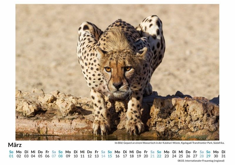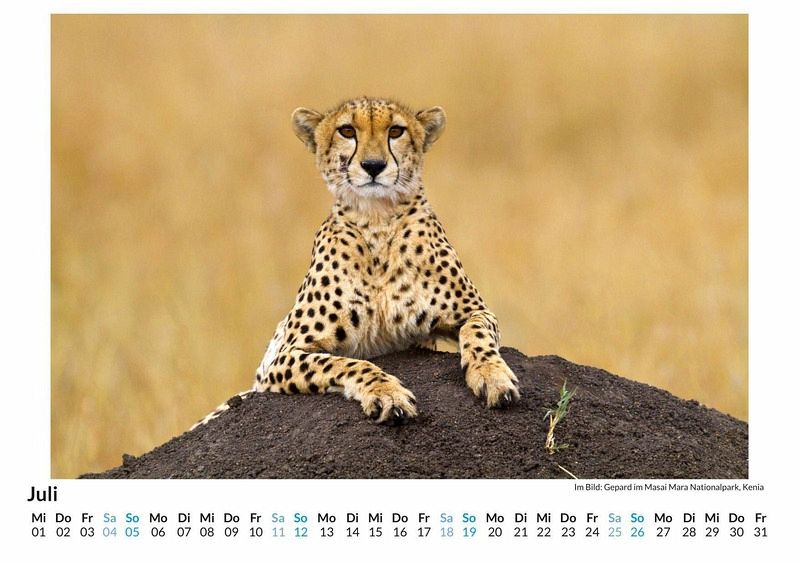 Entdecken Sie die faszinierende Eleganz des schnellsten Landtieres der Welt mit unserem exklusiven Gepard-Wandkalender! Dieser hochwertige Kalender zeigt 12 atemberaubende Motive, die die Anmut und Kraft dieser majestätischen Kleinkatze in ihrer natürlichen Umgebung einfangen. Gedruckt auf lichtbeständigem Bilderdruckpapier, bleiben die Farben lebendig und strahlend - Monat für Monat. Nachhaltigkeit liegt uns am Herzen: Unsere Kalender werden in Deutschland auf FSC-zertifiziertem Papier produziert. Holen Sie sich ein Stück Natur in Ihr Zuhause und lassen Sie sich von der Schönheit des Gepards inspirieren. Perfekt als Geschenk oder für Ihre eigenen vier Wände! Hochwertig Erleben Sie ein Jahr voller Eleganz mit unserem Premium-Fotokalender. Jedes der 12 Motive ist auf hochwertigem, lichtbeständigem Bilderdruckpapier gedruckt, um die Lebendigkeit jedes Bildes zu bewahren. Die robuste Spiralbindung gewährleistet Langlebigkeit und einfache Handhabung. Nachhaltig Unser Engagement für die Umwelt spiegelt sich in jedem Exemplar wider. Durch die Produktion auf Abruf reduzieren wir signifikant unseren Abfall. Wir verwenden ausschließlich umweltfreundliches, FSC-zertifiziertes Papier. Stolz gefertigt in Deutschland, achten wir bei unserer Logistik auf Klimaschutz, um unseren ökologischen Fußabdruck zu minimieren. Das ideale Geschenk Dieser Kalender ist das perfekte Präsent für jeden Anlass - ob Weihnachten, Geburtstage oder einfach als liebevolle Aufmerksamkeit zwischendurch. Geeignet für Freunde, Familie, Kinder und Erwachsene gleichermaßen, bereichert er jedes Zuhause mit seiner Vielfalt und Schönheit, unabhängig vom Alter der Beschenkten.