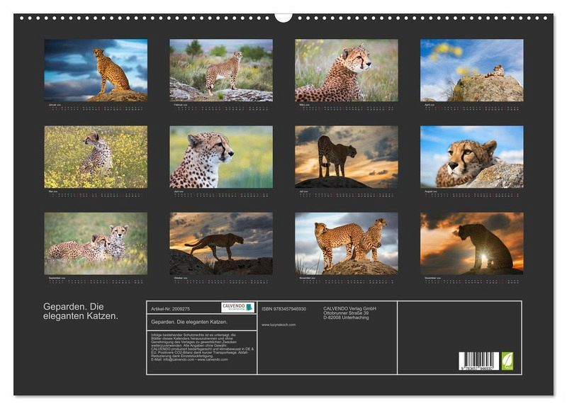 QUALITÄT - Hochwertiger Fotokalender mit 12 wunderschönen Motiven auf lichtbeständigem Bilderdruckpapier, robuste Spiralbindung mit Aufhängebügel.NACHHALTIG - deutliche Abfallreduzierung durch bedarfsgerechte Einzelstückfertigung, umweltfreundliches FSC-zertifiziertes Papier, Produktion in Deutschland, klimabewusste Logistik.PERFEKTES GESCHENK - Kalender für Freunde und Familie, für Kinder und Erwachsene, jung und alt, zu Weihnachten, Geburtstag oder zwischendurch.VIELFALT - Bildkalender in verschiedenen Formaten, z.B. DIN A5, DIN A4, DIN A3 sowie DIN A2. Ob Naturmotiv, Gemälde oder Fotos, ideal für ein persönliches Wohlfühlambiente.Eindrucksvolle Geparden-Portraits in ihrer natürlicher Umgebung. von Autor(in): Lucyna Koch