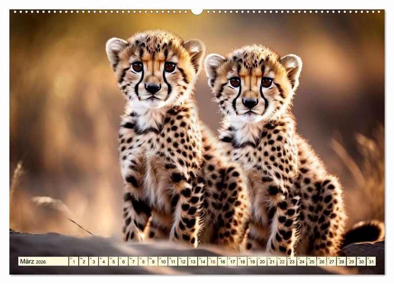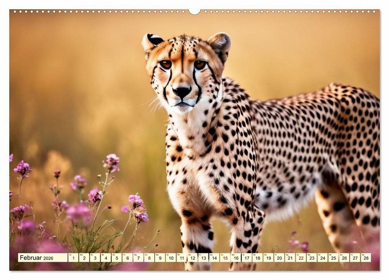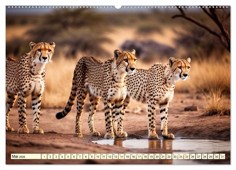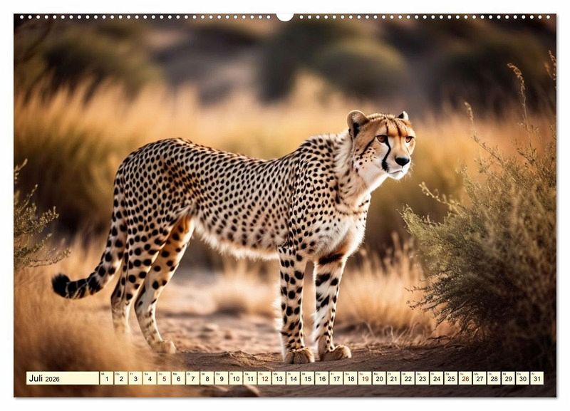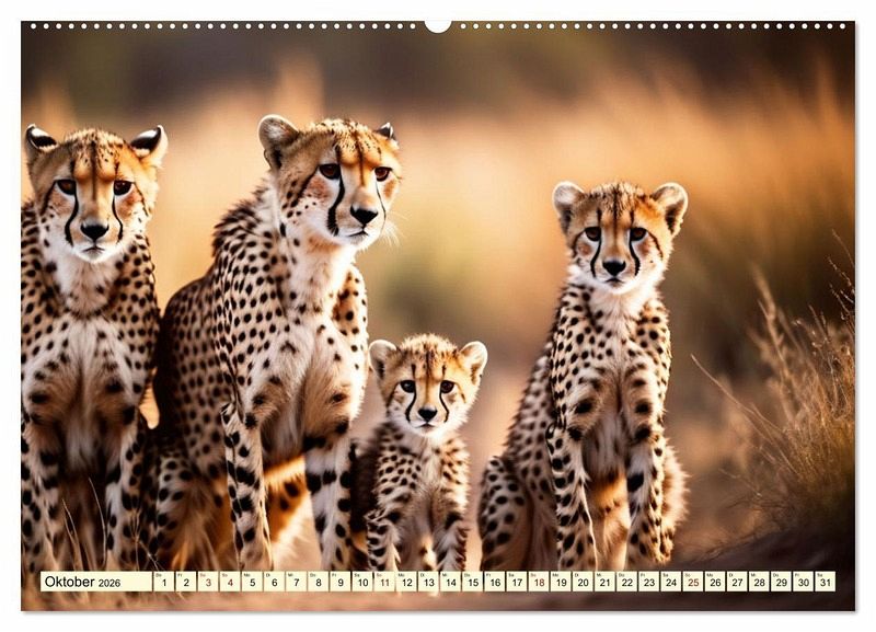 Die in Afrika lebenden Geparden sind schlanke und elegante Raubkatzen, die für ihre hohe Geschwindigkeit und Wendigkeit bekannt sind. Sie haben ein gelblich gefärbtes Fell mit schwarzen Flecken, die ihnen eine gute Tarnung in ihrem Lebensraum, den Savannen und trockenen Graslandschaften Afrikas, bieten. Durch ihre langen Beine und den schlanken Körperbau erreichen sie bei der Jagd nach Beutetieren Geschwindigkeiten von bis zu 120 Kmh. Ihre charakteristischen schwarzen "Tränenstreifen" unter den Augen dienen dazu, das Sonnenlicht zu filtern und ihnen bei der Jagd am Tag zu helfen. Die faszinierenden Katzen wurden mit Hilfe der KI in Szene gesetzt.