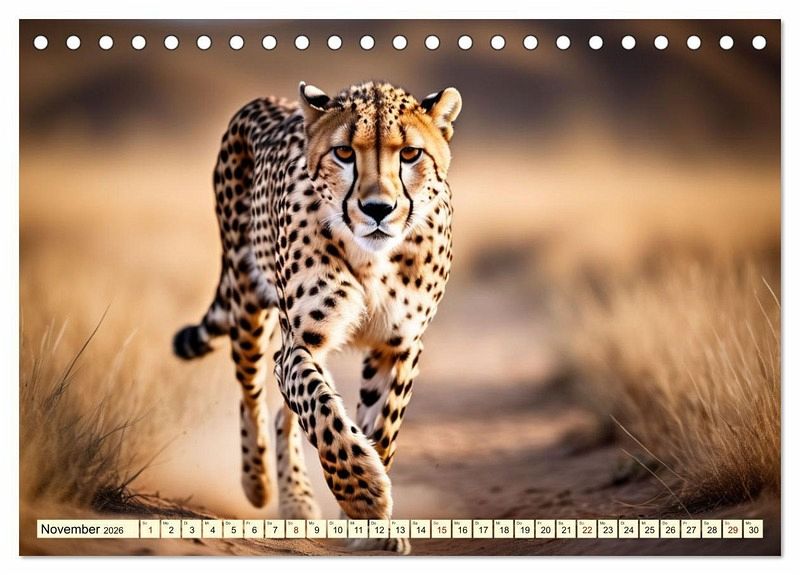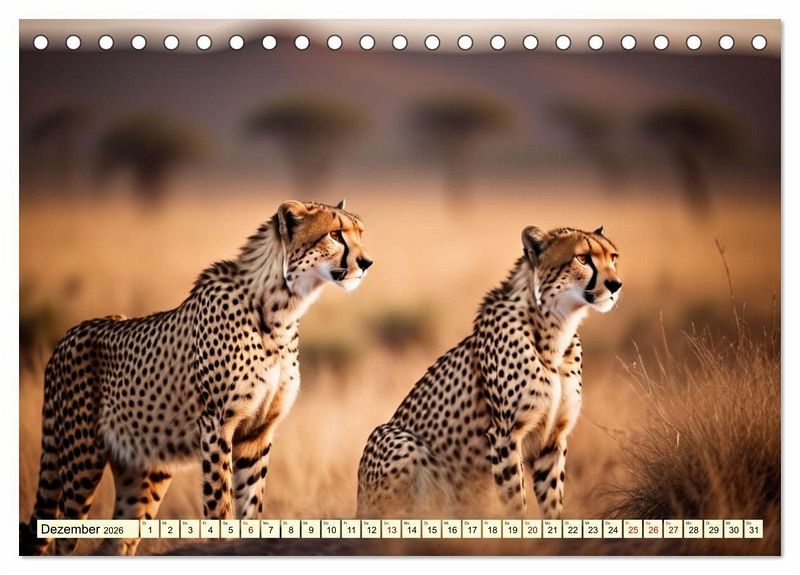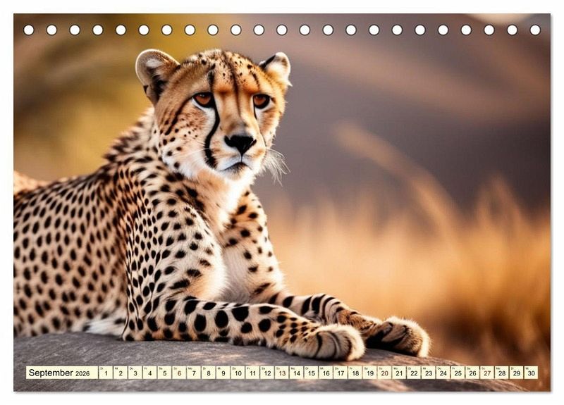 Die in Afrika lebenden Geparden sind schlanke und elegante Raubkatzen, die für ihre hohe Geschwindigkeit und Wendigkeit bekannt sind. Sie haben ein gelblich gefärbtes Fell mit schwarzen Flecken, die ihnen eine gute Tarnung in ihrem Lebensraum, den Savannen und trockenen Graslandschaften Afrikas, bieten. Durch ihre langen Beine und den schlanken Körperbau erreichen sie bei der Jagd nach Beutetieren Geschwindigkeiten von bis zu 120 Kmh. Ihre charakteristischen schwarzen "Tränenstreifen" unter den Augen dienen dazu, das Sonnenlicht zu filtern und ihnen bei der Jagd am Tag zu helfen. Die faszinierenden Katzen wurden mit Hilfe der KI in Szene gesetzt.