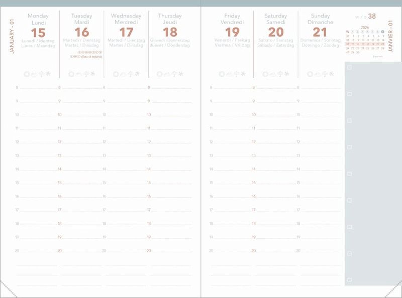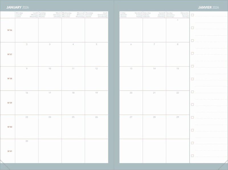 Quo Vadis - Terminkalender - 2026 - Geschäft - Die Woche Planning - Mehrsprachig - Ella - Blau - Dez/Dez - 10x15 cm - Clairefontaine-Papier Weiß - Hergestellt in Frankreich Farbenfroher Wochenkalender mit einer doppelseitigen Wochenübersicht, damit Sie alles im Blick behalten. Enthält eine monatliche Doppelseite am Anfang jedes Monats, um einen Überblick über bevorstehende Ereignisse zu erhalten Papier Clairefontaine, weiß, für ein glattes und flüssiges Schreibgefühl, perforierte abreißbare Ecken für eine einfache Orientierung Abnehmbarer Deckel und nachfüllbarer Inhalt für eine lange Verwendung Aufbewahrungstaschen für kleine Dokumente