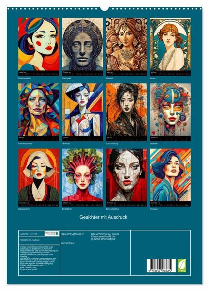 Erleben Sie ein faszinierendes Spektrum von Frauenporträts, umgesetzt mit der Hilfe von künstlicher Intelligenz. Jedes Bild drückt unter Verwendung bestimmter grafischer Stilformen ein Gefühl, eine Emotion oder eine Haltung aus. So ist dieser Kalender nicht nur eine Hommage an weibliche Kraft und Eleganz, sondern auch ein Kaleidoskop mentaler Ausdrucksarten. Jeder Grafikstil wurde sorgfältig ausgewählt, um die jeweilige Emotion authentisch und eindrucksvoll widerzugeben.