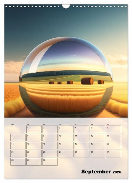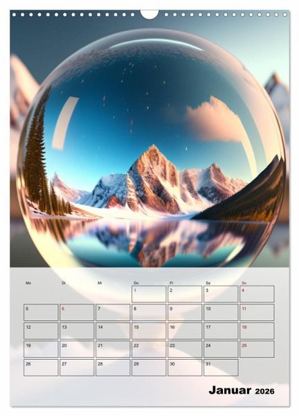 Dieser atemberaubende Wandkalender ist ein echter Hingucker und wird deine Räume in eine magische Atmosphäre tauchen. Die Landschaftsbilder, die sich in einer Kugel spiegeln, sind nicht nur ein echter Blickfang, sondern auch einzigartig in ihrer Art. Durch die spezielle Technik, die für die Erstellung der Bilder verwendet wurde, entsteht ein faszinierender 3D-Effekt, der dich in eine andere Welt eintauchen lässt.