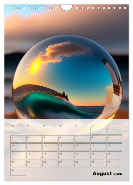 Jeder Monat des Jahres wird durch ein neues, atemberaubendes Landschaftsbild dargestellt, das durch die Kugel-Optik noch intensiver wirkt. Von majestätischen Bergen über glitzernde Seen bis hin zu traumhaften Stränden - dieser Kalender mit Ki erstellten Bildern bietet eine breite Palette an unterschiedlichen Landschaften und sorgt für