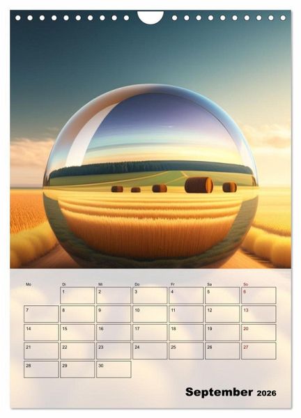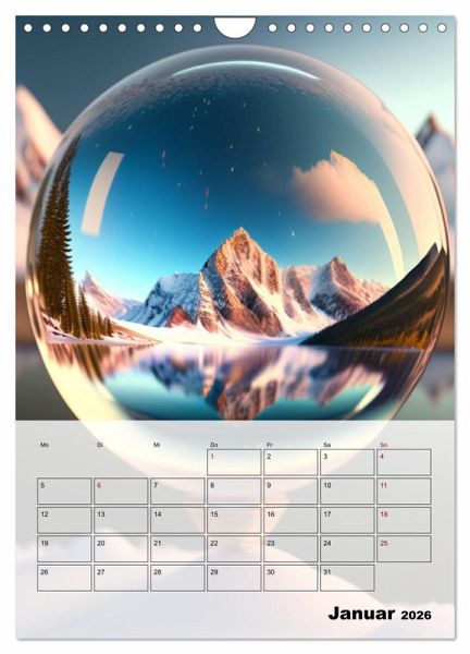 Dieser atemberaubende Wandkalender ist ein echter Hingucker und wird deine Räume in eine magische Atmosphäre tauchen. Die Landschaftsbilder, die sich in einer Kugel spiegeln, sind nicht nur ein echter Blickfang, sondern auch einzigartig in ihrer Art. Durch die spezielle Technik, die für die Erstellung der Bilder verwendet wurde, entsteht ein faszinierender 3D-Effekt, der dich in eine andere Welt eintauchen lässt.