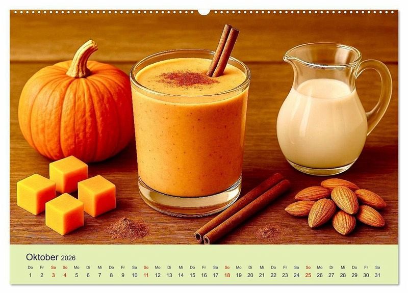 Oktober: Hellbrauner Smoothie: Kürbis · Zimt · Mandelmilch