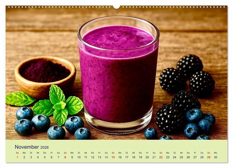 November: Lila Smoothie: Heidelbeere · Brombeere · Açaí