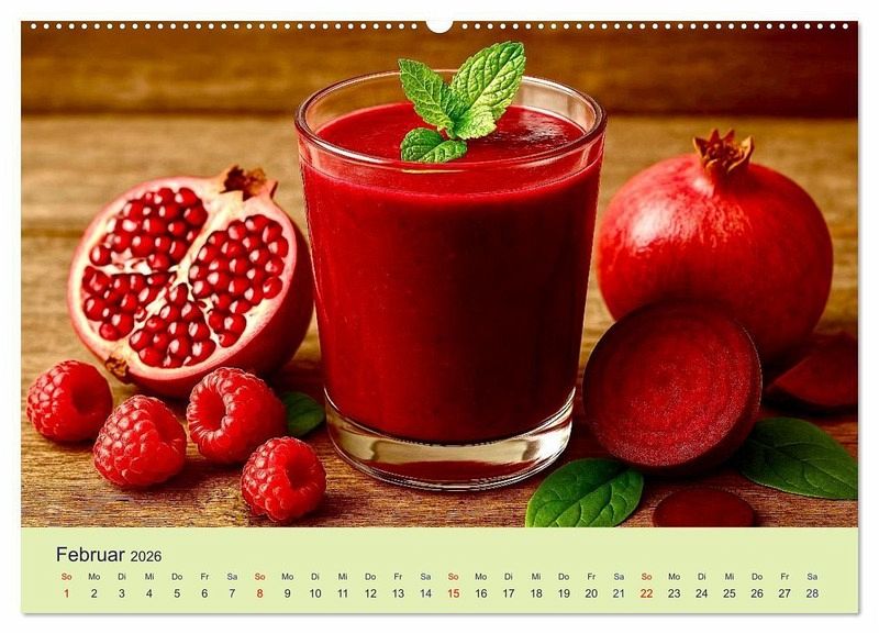 Februar: Roter Smoothie: Rote Bete · Himbeere · Granatapfel