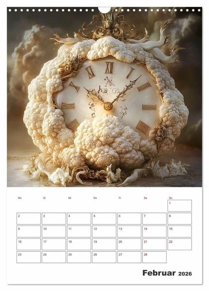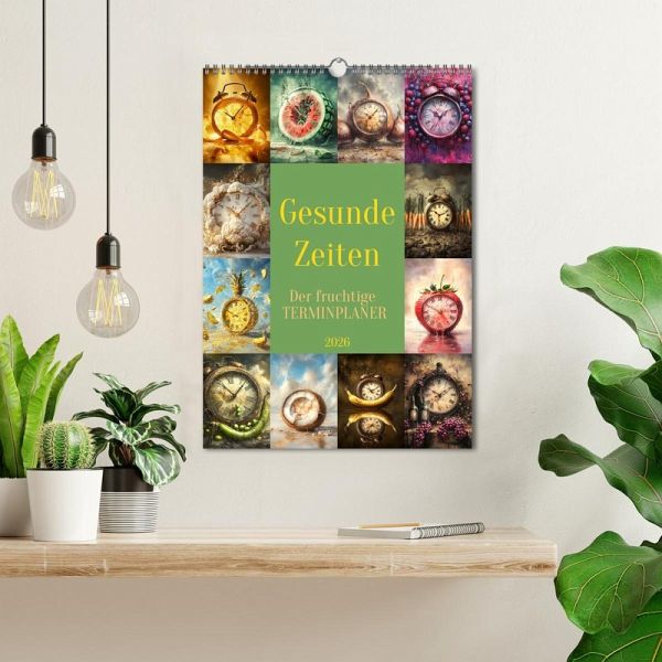 Der fruchtig coole Planer zeigt von einer KI erstellte surreal gestaltete Verbindungen zwischen Obst und Gemüse sowie der immerwährenden Zeit. Damit Sie diese immer im Blick haben und keinen Termin mehr verpassen, bieten die Monatsfelder genug Platz für Ihre wichtigen Eintragungen.