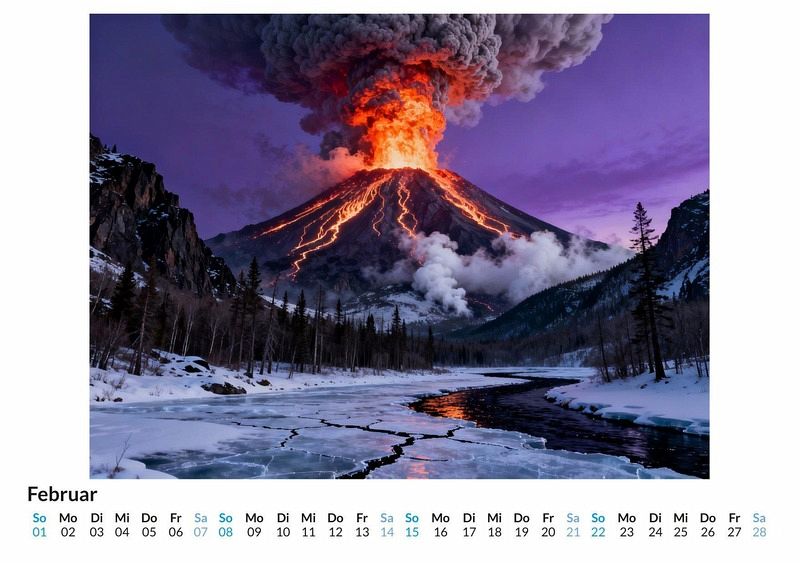 Die ungebändigte Kraft der Erde, eingefangen in zwölf eindrucksvollen Momenten. Der Kalender "Gewaltige Naturphänomene" präsentiert die rohe Energie unseres Planeten in einer einzigartigen Zusammenstellung. Er zeigt die Welt von ihrer wildesten Seite, wo gewaltige Kräfte die Landschaft formen und den Himmel beherrschen. Dieser Kalender ist eine ausgezeichnete Wahl: * Für alle, die von der Dynamik und Macht der Natur fasziniert sind. * Für Menschen, die eine besondere Wanddekoration suchen, die zum Nachdenken anregt. * Als Geschenk für Geologie, Meteorologie und Fotografie Begeisterte. Jedes Monatsblatt zeigt eine Szene von monumentaler Wucht. Massive Gletscherformationen, die in arktischen Meeren kalben, Aschewolken, die aus aktiven Vulkanen aufsteigen, und Superzellen, die den Himmel verdunkeln. Diese Darstellungen wurden nicht von einem menschlichen Fotografen vor Ort aufgenommen, sondern durch komplexe Rechenprozesse aus reinen Daten erschaffen, um die Essenz dieser Phänomene zu visualisieren. Die Kompositionen konzentrieren sich auf die pure Kraft und die dramatische Ästhetik der Naturereignisse. Mit dem Kauf dieses Kalenders erhält man: * Zwölf Monatsmotive, die die gewaltigsten Ereignisse der Natur zeigen. * Ein Kalendarium, das genügend Platz für eigene Notizen bietet. * Eine stabile Spiralbindung für einfaches Umblättern und sicheres Aufhängen. Der Kalender "Gewaltige Naturphänomene" ist mehr als nur ein Zeitplaner; er ist eine tägliche Erinnerung an die beeindruckende und manchmal furchteinflößende Schönheit unseres Planeten. Eine Reise durch die Elemente erwartet den Betrachter. Es lohnt sich, die einzelnen Monatsansichten zu entdecken.