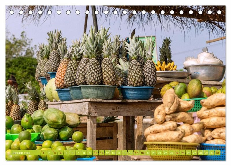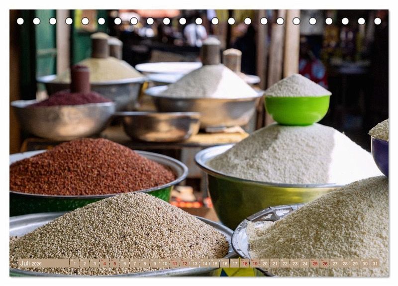 Erleben Sie den Zauber von Gewürzen und Aromen Westafrikas mit dem Bildkalender "Märkte in Ghana"! Tauchen Sie ein in die faszinierende Welt der exotischen Gewürze und entdecken Sie die pulsierenden Märkte Ghanas. Jeden Monat präsentiert der Kalender ein neues inspirierendes Bild, das Sie auf eine kulinarische Reise mitnimmt.
