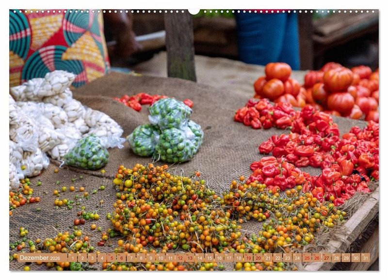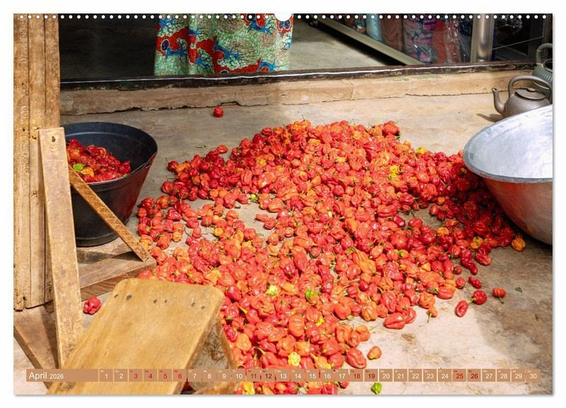 Erleben Sie den Zauber von Gewürzen und Aromen Westafrikas mit dem Bildkalender "Märkte in Ghana"! Tauchen Sie ein in die faszinierende Welt der exotischen Gewürze und entdecken Sie die pulsierenden Märkte Ghanas. Jeden Monat präsentiert der Kalender ein neues inspirierendes Bild, das Sie auf eine kulinarische Reise mitnimmt.