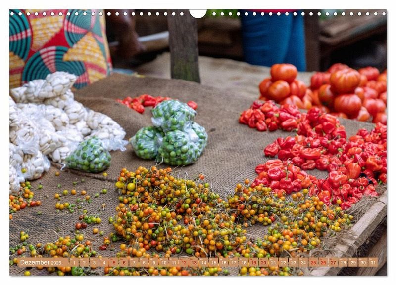 Erleben Sie den Zauber von Gewürzen und Aromen Westafrikas mit dem Bildkalender "Märkte in Ghana"! Tauchen Sie ein in die faszinierende Welt der exotischen Gewürze und entdecken Sie die pulsierenden Märkte Ghanas. Jeden Monat präsentiert der Kalender ein neues inspirierendes Bild, das Sie auf eine kulinarische Reise mitnimmt.
