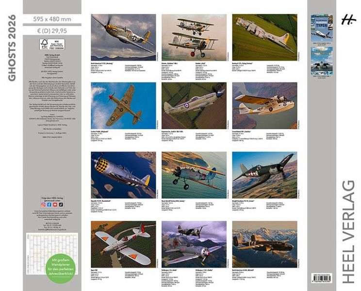 Zwölf der spektakulärsten Flugzeug-Klassiker in ihrem Element. Der preisgekrönte Fotograf Philip Makanna hat für den ebenfalls ausgezeichneten Bestseller im HEEL Programm wieder legendäre Maschinen aus den 1930er und 1940er Jahren am Himmel und in Aktion abgelichtet. Seit mehr als 30 Jahren fotografiert Makanna in diesem einzigartigen und faszinierenden Stil und präsentiert die aufregendsten Warbirds so, wie sich das gehört: Gleichsam auf Augenhöhe hoch über der Erde. Ein Fest für alle Flugzeugfans. Der Fotograf Philip Makanna dokumentiert mit seiner Kamera diese Zeitreise in eine besondere Epoche des Flugzeugbaus und vermittelt auf sehr intensive Weise die Faszination, die von den sogenannten Warbirds ausgeht. Die Ghosts-Kalender von Makanna erhalten seit einigen Jahren internationale Aufmerksamkeit durch die Auszeichnung zum Kalender des Jahres (Silver und Gold Award in Photography 2012 bei der "International Calendar Competition" und "Lifetime Achievement Award" für Philip Makanna von der "Society for Aviation Photography").