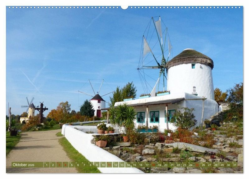 14 Mühlen aus elf Ländern können in der Region Südheide Gifhorn auf 10 Hektar Land bewundert werden. Die Nachbauten der Mühlen stammen aus Frankreich, Spanien, Griechenland und Portugal und vermitteln das Flair des Südens. Rossmühle und Bockwindmühlen aus Deutschland und Russland, sowie die historische Mühle von Sanssouci sind sehenswerte Highlights der Anlage. Asien ist mit einer Wassermühle aus Südkorea vertreten und überrascht mit skurrilen, exotischen Holzfiguren. Ein sehenswerter Kalender, der die Reiselust befeuert.
