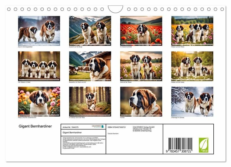 QUALITÄT - Hochwertiger Fotokalender mit 12 wunderschönen Motiven auf lichtbeständigem Bilderdruckpapier, robuste Spiralbindung mit Aufhängebügel.NACHHALTIG - deutliche Abfallreduzierung durch bedarfsgerechte Einzelstückfertigung, umweltfreundliches FSC-zertifiziertes Papier, Produktion in Deutschland, klimabewusste Logistik.PERFEKTES GESCHENK - Kalender für Freunde und Familie, für Kinder und Erwachsene, jung und alt, zu Weihnachten, Geburtstag oder zwischendurch.VIELFALT - Bildkalender in verschiedenen Formaten, z.B. DIN A5, DIN A4, DIN A3 sowie DIN A2. Ob Naturmotiv, Gemälde oder Fotos, ideal für ein persönliches Wohlfühlambiente.Schweizer Nationalhund aus den Alpen von Autor(in): Claudia Kleemann