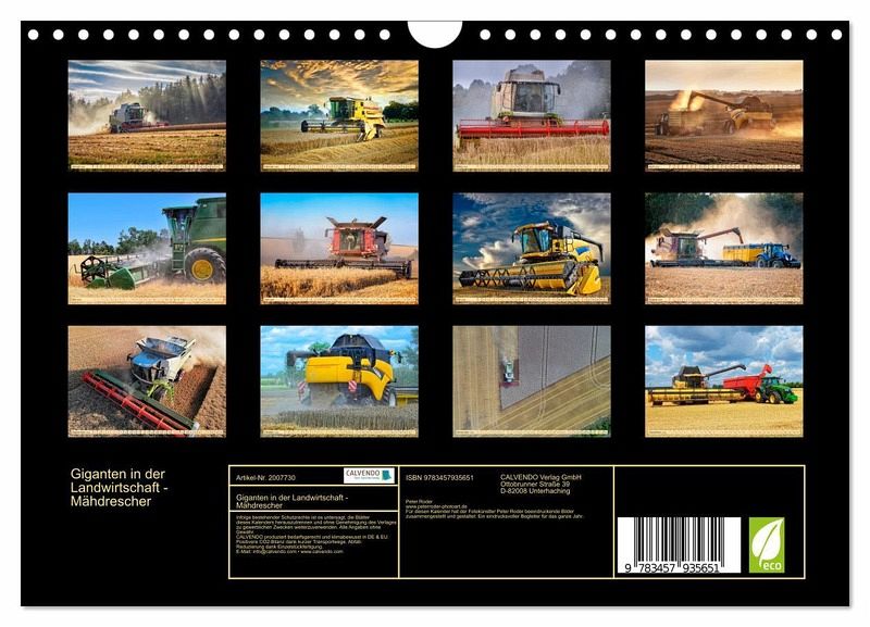 Der Mähdrescher fährt autonom und so präzise, wie es kein Mensch könnte, GPS macht es möglich. Die Aufgabe des Bauern auf diesen Hightech-Maschinen ist die Kontrolle. Für diesen Kalender hat der Fotokünstler Peter Roder beeindruckende Bilder landwirtschaftlicher Fahrzeuge und Maschinen zusammengestellt und gestaltet: Ein eindrucksvoller Begleiter für das ganze Jahr.