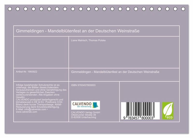 QUALITÄT - Hochwertiger Fotokalender mit 12 wunderschönen Motiven auf lichtbeständigem Bilderdruckpapier, robuste Spiralbindung.NACHHALTIG - deutliche Abfallreduzierung durch bedarfsgerechte Einzelstückfertigung, umweltfreundliches FSC-zertifiziertes Papier, Produktion in Deutschland, klimabewusste Logistik.PERFEKTES GESCHENK - Kalender für Freunde und Familie, für Kinder und Erwachsene, jung und alt, zu Weihnachten, Geburtstag oder zwischendurch.VIELFALT - Bildkalender in verschiedenen Formaten, z.B. DIN A5, DIN A4, DIN A3 sowie DIN A2. Ob Naturmotiv, Gemälde oder Fotos, ideal für ein persönliches Wohlfühlambiente.Mandelblüte an der Deutschen Weinstraße von Autor(in): Thomas Polske