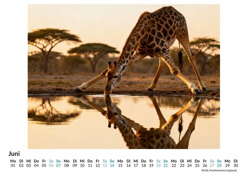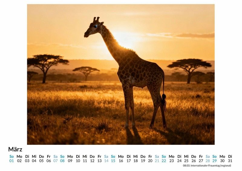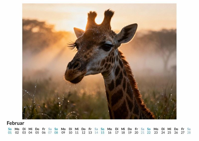 Mit ihrer stillen Erhabenheit und dem unverwechselbaren Muster verkörpert die Giraffe eine natürliche Eleganz. Der Kalender "Giraffe" widmet sich diesem faszinierenden Tier und präsentiert es in zwölf einzigartigen Kompositionen, die seine anmutige Natur in den Vordergrund stellen. Dieser Kalender ist eine ausgezeichnete Wahl: * Für Liebhaber von Giraffen und der afrikanischen Tierwelt. * Für Menschen, die eine stilvolle und unkonventionelle Wanddekoration schätzen. * Für alle, die ein Geschenk mit Symbolcharakter suchen. Jeder Monat enthüllt eine neue Facette der Giraffe. Die Motive zeigen das Tier in verschiedenen Posen und Umgebungen, mal detailreich, mal abstrakt. Die Farbpalette ist bewusst zurückhaltend gewählt, um die Formen und die ruhige Ausstrahlung der Giraffe zu betonen. Diese Motive wurden nicht von einem Pinsel, sondern durch das Zusammenspiel komplexer Algorithmen und kreativer Impulse zum Leben erweckt, was jedem Bild eine besondere Tiefe verleiht. Beim Kauf dieses Kalenders kann man Folgendes erwarten: * Zwölf sorgfältig ausgewählte Monatsmotive, die die Giraffe in den Mittelpunkt stellen. * Ein praktischer Jahresbegleiter mit übersichtlichem Kalendarium. * Ein dekoratives Element, das jedem Raum eine besondere Atmosphäre verleiht. Der Kalender "Giraffe" ist mehr als nur ein Zeitmesser. Er ist eine Hommage an die Schönheit des Unkonventionellen und die stille Kraft der Natur. Die zwölf Darstellungen begleiten durch das Jahr und bringen die Eleganz der Giraffe in den Alltag. Ein Blick auf die Monatsansichten gibt einen vollständigen Eindruck.