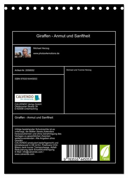 QUALITÄT - Hochwertiger Fotokalender mit 12 wunderschönen Motiven auf lichtbeständigem Bilderdruckpapier, robuste Spiralbindung.NACHHALTIG - deutliche Abfallreduzierung durch bedarfsgerechte Einzelstückfertigung, umweltfreundliches FSC-zertifiziertes Papier, Produktion in Deutschland, klimabewusste Logistik.PERFEKTES GESCHENK - Kalender für Freunde und Familie, für Kinder und Erwachsene, jung und alt, zu Weihnachten, Geburtstag oder zwischendurch.VIELFALT - Bildkalender in verschiedenen Formaten, z.B. DIN A5, DIN A4, DIN A3 sowie DIN A2. Ob Naturmotiv, Gemälde oder Fotos, ideal für ein persönliches Wohlfühlambiente.Begegnungen mit Giraffen in Afrika von Autor(in): Michael Herzog