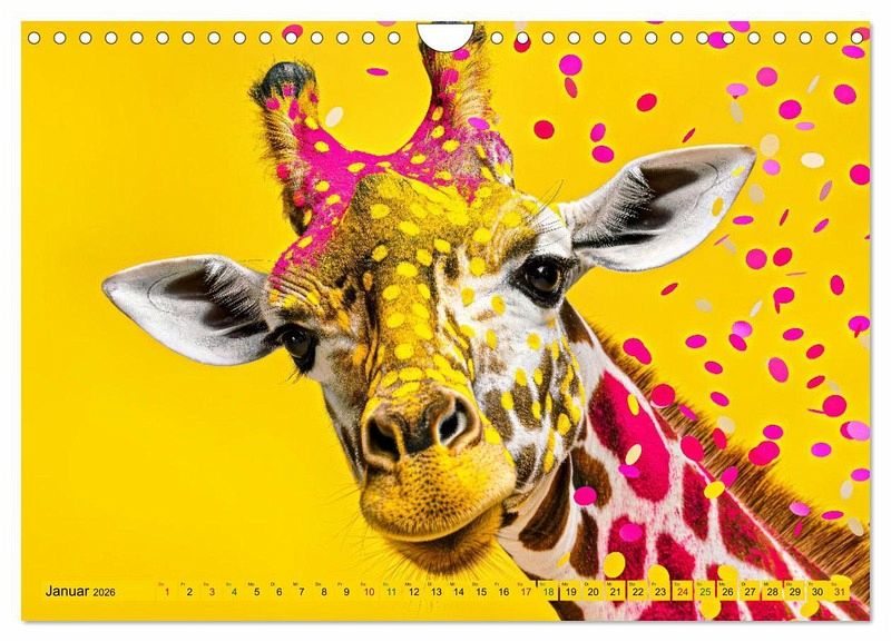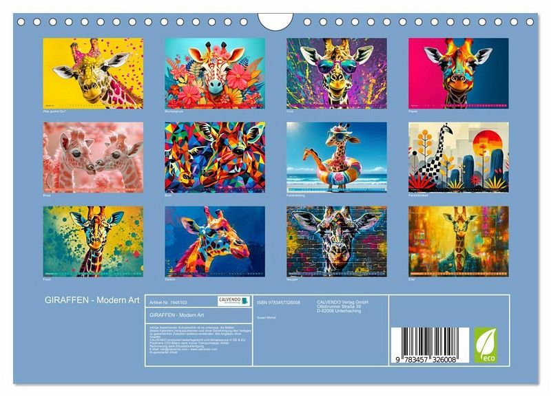 Entdecken Sie mit diesem Kalender "GIRAFFEN - Modern Art" eine völlig neue Dimension der Kunst! Lassen Sie sich jeden Monat von einzigartigen und modernen Darstellungen dieser majestätischen Tiere verzaubern. Jeder Kalenderblatt ist ein kleines Kunstwerk für sich, das die Eleganz und Anmut der Giraffen in einem modernen Stil einfängt.