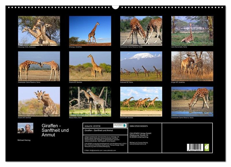 QUALITÄT - Hochwertiger Fotokalender mit 12 wunderschönen Motiven auf lichtbeständigem Bilderdruckpapier, robuste Spiralbindung mit Aufhängebügel.NACHHALTIG - deutliche Abfallreduzierung durch bedarfsgerechte Einzelstückfertigung, umweltfreundliches FSC-zertifiziertes Papier, Produktion in Deutschland, klimabewusste Logistik.PERFEKTES GESCHENK - Kalender für Freunde und Familie, für Kinder und Erwachsene, jung und alt, zu Weihnachten, Geburtstag oder zwischendurch.VIELFALT - Bildkalender in verschiedenen Formaten, z.B. DIN A5, DIN A4, DIN A3 sowie DIN A2. Ob Naturmotiv, Gemälde oder Fotos, ideal für ein persönliches Wohlfühlambiente.Giraffen-Begegnungen in Afrikas Savannen von Autor(in): Michael Herzog