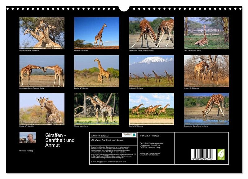 QUALITÄT - Hochwertiger Fotokalender mit 12 wunderschönen Motiven auf lichtbeständigem Bilderdruckpapier, robuste Spiralbindung mit Aufhängebügel.NACHHALTIG - deutliche Abfallreduzierung durch bedarfsgerechte Einzelstückfertigung, umweltfreundliches FSC-zertifiziertes Papier, Produktion in Deutschland, klimabewusste Logistik.PERFEKTES GESCHENK - Kalender für Freunde und Familie, für Kinder und Erwachsene, jung und alt, zu Weihnachten, Geburtstag oder zwischendurch.VIELFALT - Bildkalender in verschiedenen Formaten, z.B. DIN A5, DIN A4, DIN A3 sowie DIN A2. Ob Naturmotiv, Gemälde oder Fotos, ideal für ein persönliches Wohlfühlambiente.Giraffen-Begegnungen in Afrikas Savannen von Autor(in): Michael Herzog
