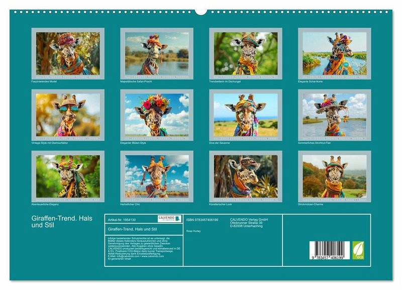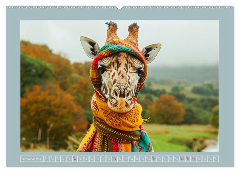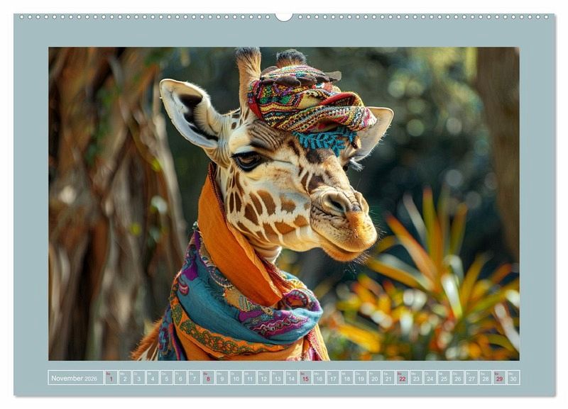 Tauchen Sie ein in eine Welt der Mode, wo die eleganten Giraffen die Savanne erobern! Diese Bilder wurden mit Hilfe von KI erstellt und präsentiert Ihnen zwölf Monate voller glamouröser Auftritte, bei denen diese langhalsigen Schönheiten mit ihren atemberaubenden Accessoires und stylischen Kopfbedeckungen für Furore sorgen. Lassen Sie sich von der unvergleichlichen Eleganz und dem einzigartigen Stil dieser tierischen Models verzaubern und bringen Sie Farbe und Spaß in Ihr Jahr!