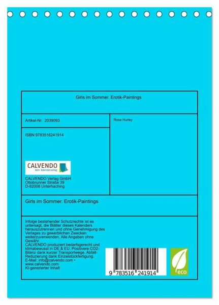 QUALITÄT - Hochwertiger Fotokalender mit 12 wunderschönen Motiven auf lichtbeständigem Bilderdruckpapier, robuste Spiralbindung.NACHHALTIG - deutliche Abfallreduzierung durch bedarfsgerechte Einzelstückfertigung, umweltfreundliches FSC-zertifiziertes Papier, Produktion in Deutschland, klimabewusste Logistik.PERFEKTES GESCHENK - Kalender für Freunde und Familie, für Erwachsene, zu Weihnachten, Geburtstag oder zwischendurch.VIELFALT - Bildkalender in verschiedenen Formaten, z.B. DIN A5, DIN A4, DIN A3 sowie DIN A2. Ob Naturmotiv, Gemälde oder Fotos, ideal für ein persönliches Wohlfühlambiente.Selbstbewusste Frauen im heißen Sommerglanz von Autor(in): Rose Hurley