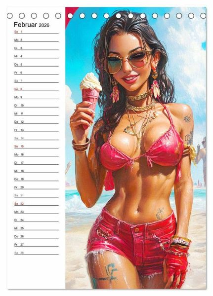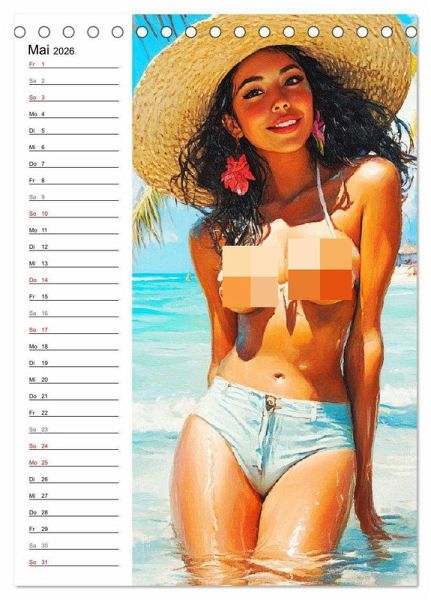 Dieser Kalender fängt die Schönheit und Ausstrahlung selbstbewusster Frauen in sommerlichen Szenerien ein. Jedes Painting zeigt freizügige Girls in der Sonne, am Wasser und umgeben von purer Leichtigkeit. Mit sinnlicher Eleganz verkörpern sie die Wärme und Leidenschaft der warmen Jahreszeit. Alle Bilder wurden mit Hilfe von KI erstellt und sind eine Hommage an verführerische Weiblichkeit und künstlerische Ästhetik.