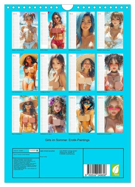Dieser Kalender fängt die Schönheit und Ausstrahlung selbstbewusster Frauen in sommerlichen Szenerien ein. Jedes Painting zeigt freizügige Girls in der Sonne, am Wasser und umgeben von purer Leichtigkeit. Mit sinnlicher Eleganz verkörpern sie die Wärme und Leidenschaft der warmen Jahreszeit. Alle Bilder wurden mit Hilfe von KI erstellt und sind eine Hommage an verführerische Weiblichkeit und künstlerische Ästhetik.