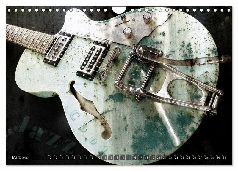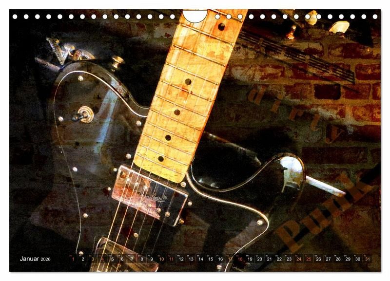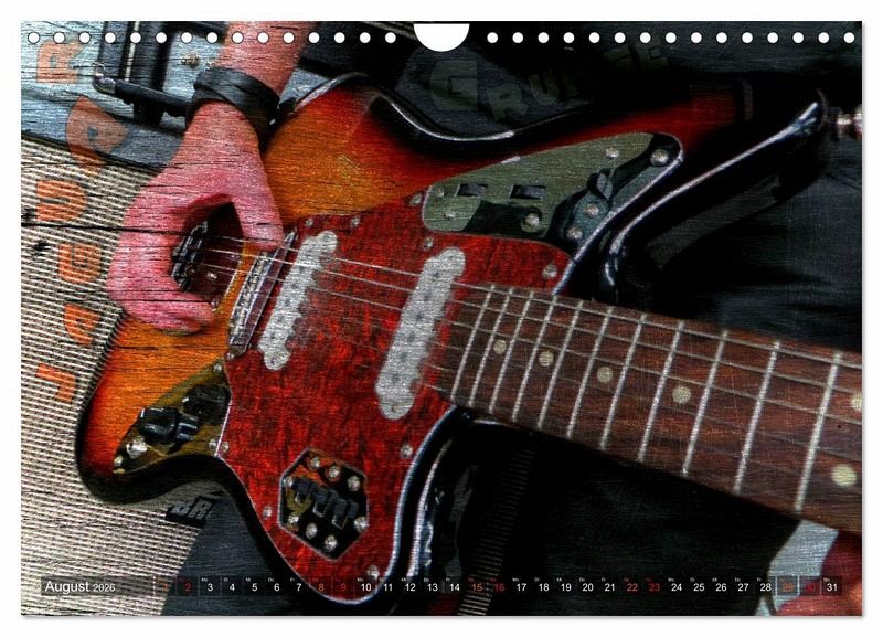 Auf jedem Kalenderblatt präsentieren sich beliebte Gitarrenschönheiten, kunstvoll bearbeitet im angesagten Grunge-Style. Stimmig in die Bildkomposition eingearbeitete Schriftzüge verraten dem Musikinteressierten die Musikgenres, in denen die Gitarren gerne verwendet werden, oder informieren über die Art des dargestellten Instruments. Die stilvollen Bilder können nach Ablauf des Kalenderjahres als dekorative Poster verwendet werden. Ein außergewöhnliches Geschenk, das allen Gitarrenfans bestimmt große Freude bereitet.