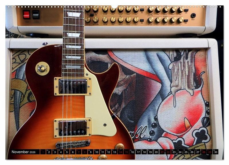 Um E-Gitarren oder E-Bässen einen satten Sound zu entlocken, müssen sie an ein Verstärkersystem angeschlossen werden. Die Vorlieben der Musiker sind je nach Musikrichtung sehr unterschiedlich, welches der passende Amp für ihr Instrument ist. Erst wenn die passende Soundeinstellung am Gitarrenamp eingestellt ist, kann "abgerockt" werden. In diesem Kalender präsentieren sich eindrucksvoll Gitarrenschönheiten vor Anlagen und Verstärkern. Das passende Geschenk für alle die mal so richtig "abrocken" möchten!