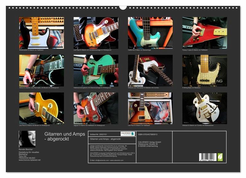QUALITÄT - Hochwertiger Fotokalender mit 12 wunderschönen Motiven auf lichtbeständigem Bilderdruckpapier, robuste Spiralbindung mit Aufhängebügel.NACHHALTIG - deutliche Abfallreduzierung durch bedarfsgerechte Einzelstückfertigung, umweltfreundliches FSC-zertifiziertes Papier, Produktion in Deutschland, klimabewusste Logistik.PERFEKTES GESCHENK - Kalender für Freunde und Familie, für Kinder und Erwachsene, jung und alt, zu Weihnachten, Geburtstag oder zwischendurch.VIELFALT - Bildkalender in verschiedenen Formaten, z.B. DIN A5, DIN A4, DIN A3 sowie DIN A2. Ob Naturmotiv, Gemälde oder Fotos, ideal für ein persönliches Wohlfühlambiente.Faszinierende E-Gitarren und E-Bässe mit Verstärkeranlagen in Szene gesetzt von Autor(in): Renate Bleicher