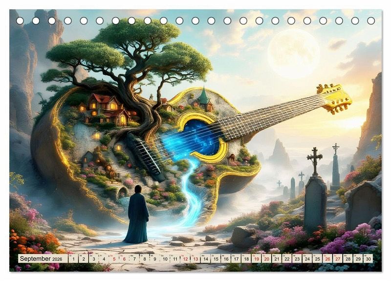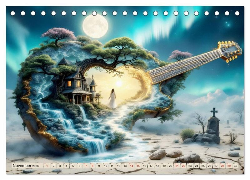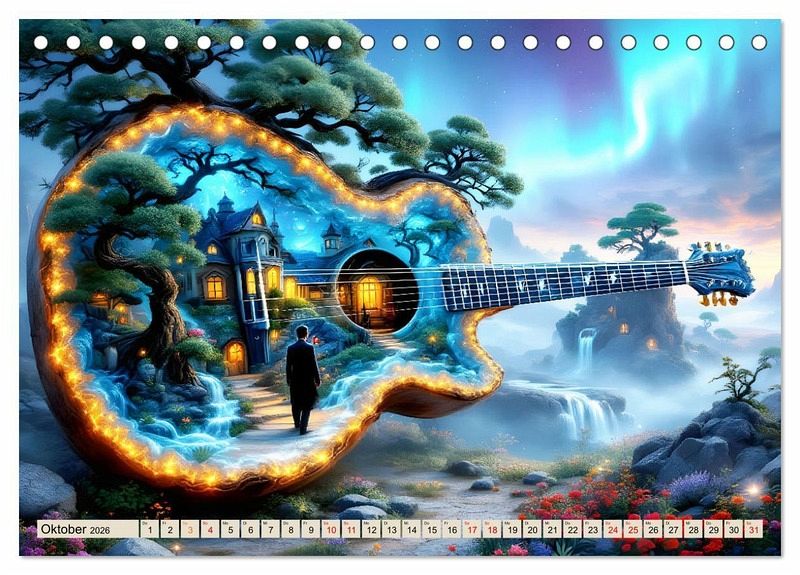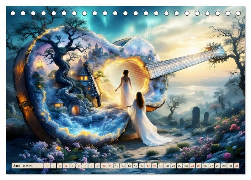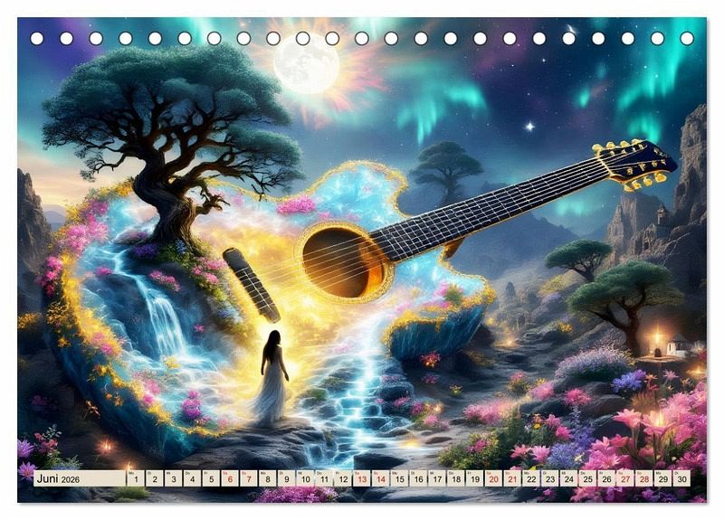 Erleben Sie die Magie und Kunst der Künstlichen Intelligenz in unserem atemberaubenden Kalender. Tauchen Sie ein in eine Welt, in der grenzenlose Kreativität auf faszinierende Landschaften trifft. Jede Seite dieses einzigartigen Kalenders entfaltet sich wie ein Portal zu einer neuen Dimension, wo übergroße Gitarren als Tore zu malerischen Paradiesen dienen. Reisen Sie durch majestätische Szenerien und entdecken Sie die Schönheit, die jenseits unseres alltäglichen Daseins liegt. Erleben Sie Monat für Monat eine visuelle Reise, die Ihre Fantasie anregt und Ihre Seele berührt.