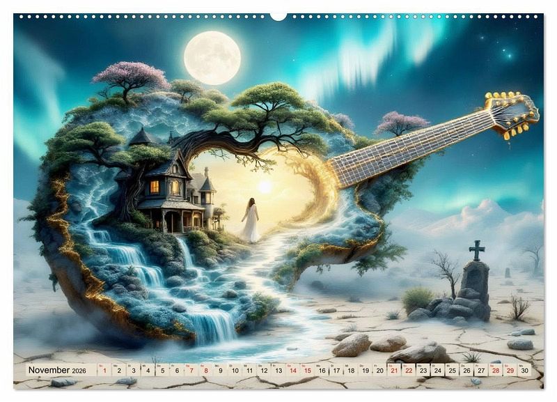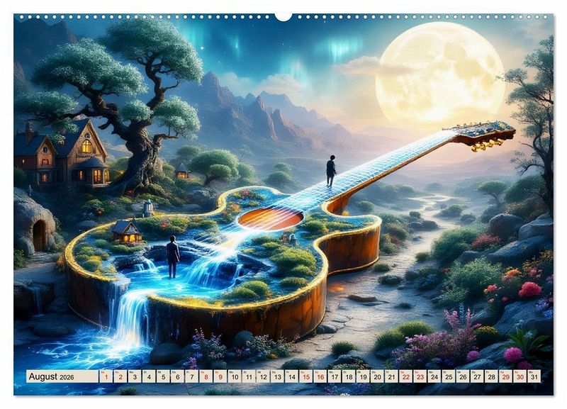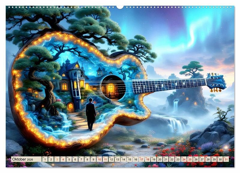 Erleben Sie die Magie und Kunst der Künstlichen Intelligenz in unserem atemberaubenden Kalender. Tauchen Sie ein in eine Welt, in der grenzenlose Kreativität auf faszinierende Landschaften trifft. Jede Seite dieses einzigartigen Kalenders entfaltet sich wie ein Portal zu einer neuen Dimension, wo übergroße Gitarren als Tore zu malerischen Paradiesen dienen. Reisen Sie durch majestätische Szenerien und entdecken Sie die Schönheit, die jenseits unseres alltäglichen Daseins liegt. Erleben Sie Monat für Monat eine visuelle Reise, die Ihre Fantasie anregt und Ihre Seele berührt.