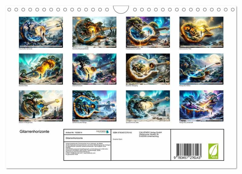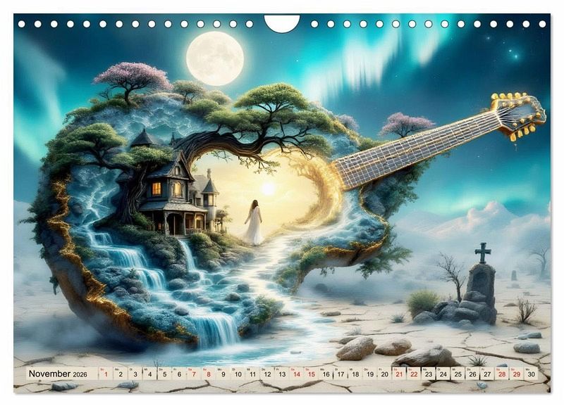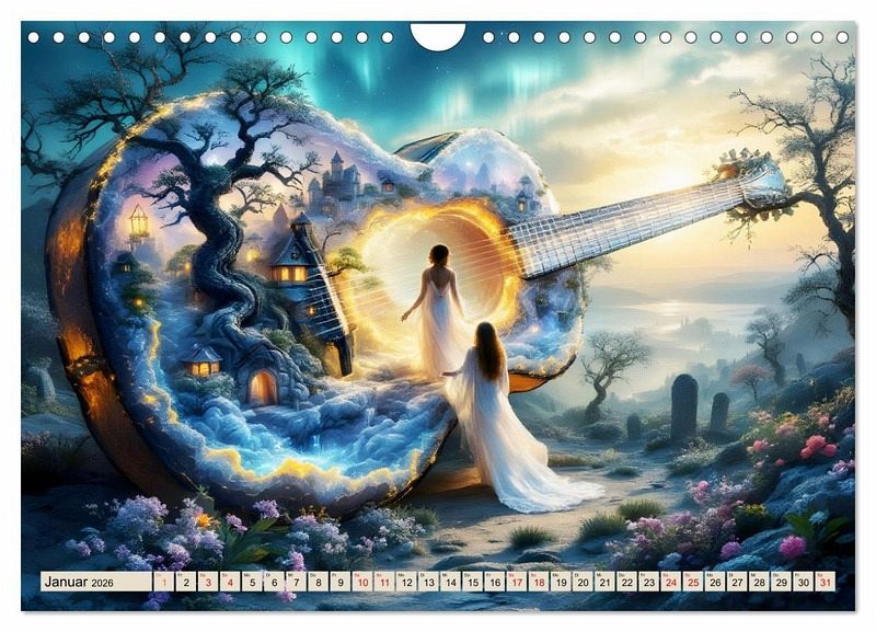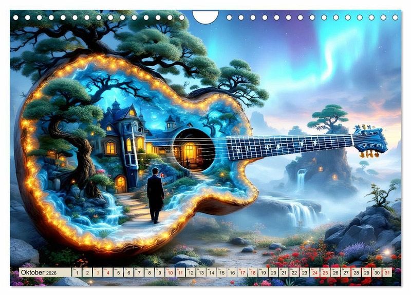 Erleben Sie die Magie und Kunst der Künstlichen Intelligenz in unserem atemberaubenden Kalender. Tauchen Sie ein in eine Welt, in der grenzenlose Kreativität auf faszinierende Landschaften trifft. Jede Seite dieses einzigartigen Kalenders entfaltet sich wie ein Portal zu einer neuen Dimension, wo übergroße Gitarren als Tore zu malerischen Paradiesen dienen. Reisen Sie durch majestätische Szenerien und entdecken Sie die Schönheit, die jenseits unseres alltäglichen Daseins liegt. Erleben Sie Monat für Monat eine visuelle Reise, die Ihre Fantasie anregt und Ihre Seele berührt.