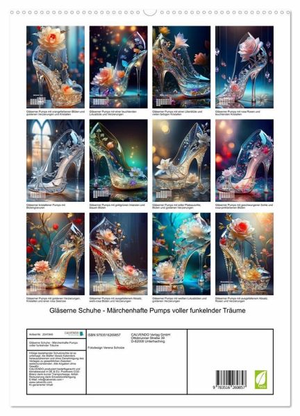 PREMIUM-LINIE - Brillanter Fotokalender mit 12 wunderschönen Motiven, Kunstdruck in Hochglanz in Museumsqualität.QUALITÄT - edle Materialien, stabile Rückwand mit 2 innovativen Einstecktaschen für eine optimale Präsentation an der Wand.NACHHALTIG - deutliche Abfallreduzierung durch bedarfsgerechte Einzelstückfertigung, umweltfreundliches FSC-zertifiziertes Papier, Produktion in Deutschland, klimabewusste Logistik.PERFEKTES GESCHENK - Kalender für Freunde und Familie, für Kinder und Erwachsene, jung und alt, zu Weihnachten, Geburtstag oder zwischendurch.Zauberhafte Schritte im Glanz der Glas-Pumps von Autor(in): Fotodesign Verena Scholze