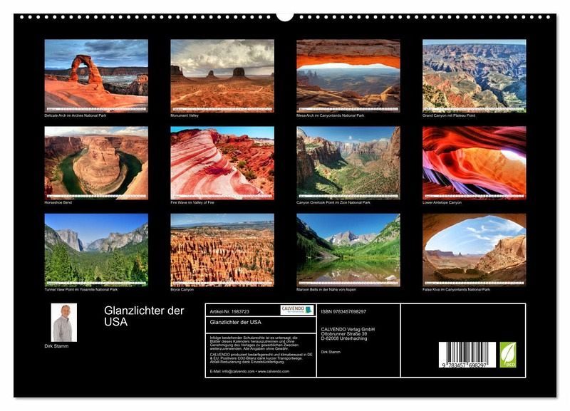 PREMIUM-LINIE - Brillanter Fotokalender mit 12 wunderschönen Motiven, Kunstdruck in Hochglanz in Museumsqualität.QUALITÄT - edle Materialien, stabile Rückwand mit 2 innovativen Einstecktaschen für eine optimale Präsentation an der Wand.NACHHALTIG - deutliche Abfallreduzierung durch bedarfsgerechte Einzelstückfertigung, umweltfreundliches FSC-zertifiziertes Papier, Produktion in Deutschland, klimabewusste Logistik.PERFEKTES GESCHENK - Kalender für Freunde und Familie, für Kinder und Erwachsene, jung und alt, zu Weihnachten, Geburtstag oder zwischendurch.Faszinierende Landschaften im Südwesten der USA. von Autor(in): Dirk Stamm