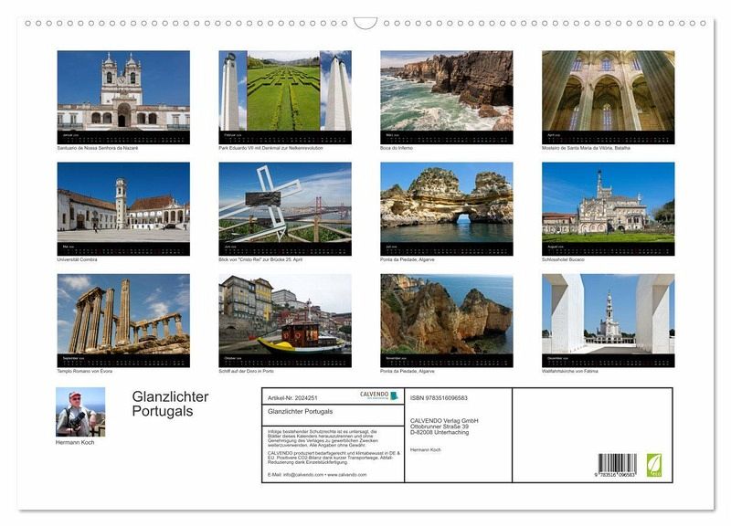 QUALITÄT - Hochwertiger Fotokalender mit 12 wunderschönen Motiven auf lichtbeständigem Bilderdruckpapier, robuste Spiralbindung mit Aufhängebügel.NACHHALTIG - deutliche Abfallreduzierung durch bedarfsgerechte Einzelstückfertigung, umweltfreundliches FSC-zertifiziertes Papier, Produktion in Deutschland, klimabewusste Logistik.PERFEKTES GESCHENK - Kalender für Freunde und Familie, für Kinder und Erwachsene, jung und alt, zu Weihnachten, Geburtstag oder zwischendurch.VIELFALT - Bildkalender in verschiedenen Formaten, z.B. DIN A5, DIN A4, DIN A3 sowie DIN A2. Ob Naturmotiv, Gemälde oder Fotos, ideal für ein persönliches Wohlfühlambiente.Bilder einer Reise durch Portugal von Autor(in): Hermann Koch