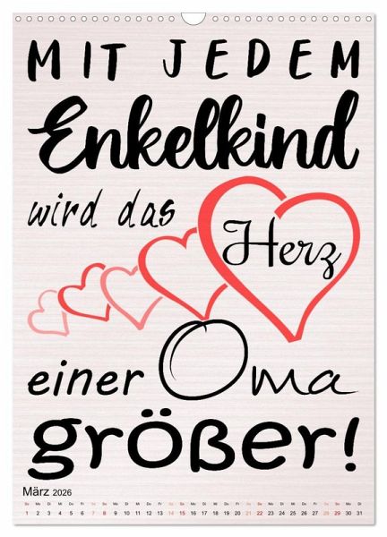 Die geliebte Oma, eine wunderbare Bereicherung des Familienlebens! Dieser Kalender ist eine phantastische Geschenkidee für die liebe Großmutter. Jeden Monat ein netter Spruch, liebevoll im Handlettering-Stil gestaltet.