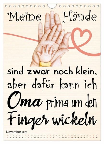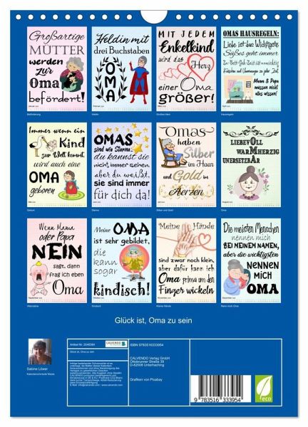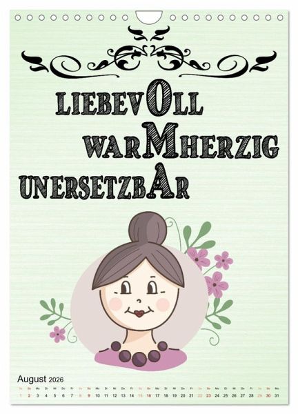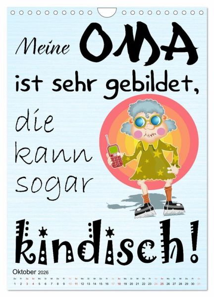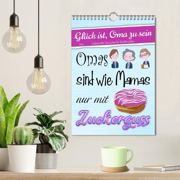 Die geliebte Oma, eine wunderbare Bereicherung des Familienlebens! Dieser Kalender ist eine phantastische Geschenkidee für die liebe Großmutter. Jeden Monat ein netter Spruch, liebevoll im Handlettering-Stil gestaltet.