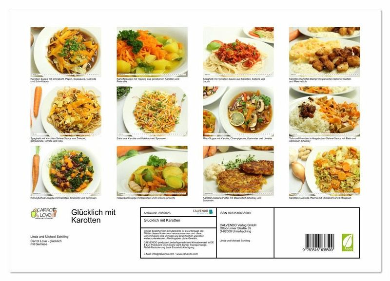 QUALITÄT - Hochwertiger Fotokalender mit 12 wunderschönen Motiven auf lichtbeständigem Bilderdruckpapier, robuste Spiralbindung mit Aufhängebügel.NACHHALTIG - deutliche Abfallreduzierung durch bedarfsgerechte Einzelstückfertigung, umweltfreundliches FSC-zertifiziertes Papier, Produktion in Deutschland, klimabewusste Logistik.PERFEKTES GESCHENK - Kalender für Freunde und Familie, für Kinder und Erwachsene, jung und alt, zu Weihnachten, Geburtstag oder zwischendurch.VIELFALT - Bildkalender in verschiedenen Formaten, z.B. DIN A5, DIN A4, DIN A3 sowie DIN A2. Ob Naturmotiv, Gemälde oder Fotos, ideal für ein persönliches Wohlfühlambiente.Karotten-Vielfalt - zur Inspiration und als Einladung zum Nachkochen! von Autor(in): Linda und Michael Schilling