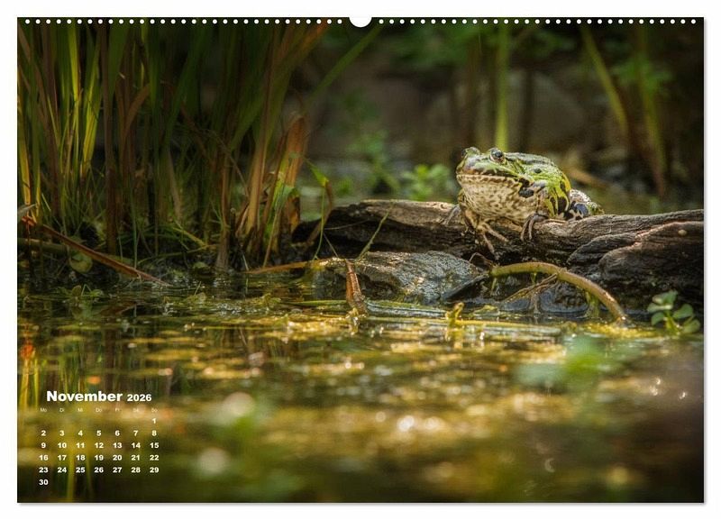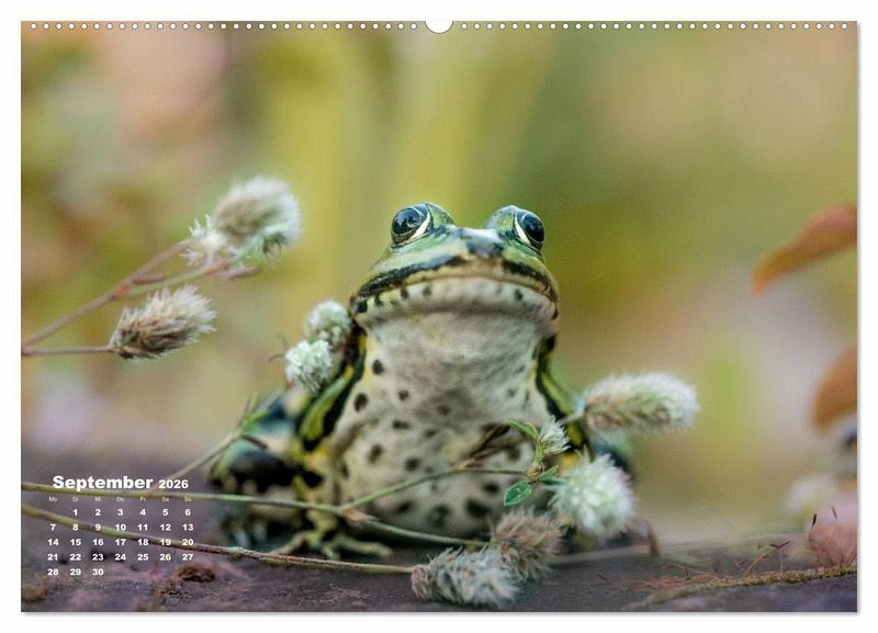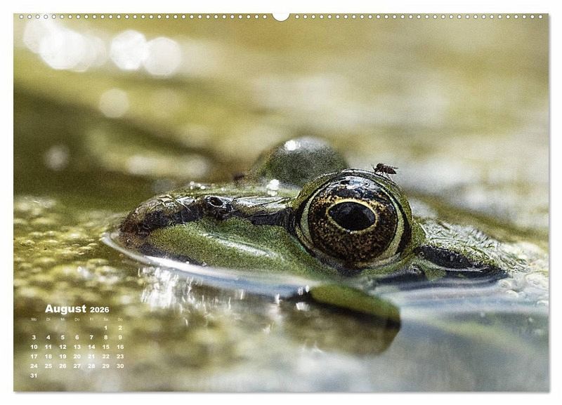 So haben Sie unsere heimischen Frösche noch nie gesehen. Aussergewöhnliche Nahaufnahmen der kleinen, grünen Gesellen begleiten Sie in diesem Kalender durch das Jahr.