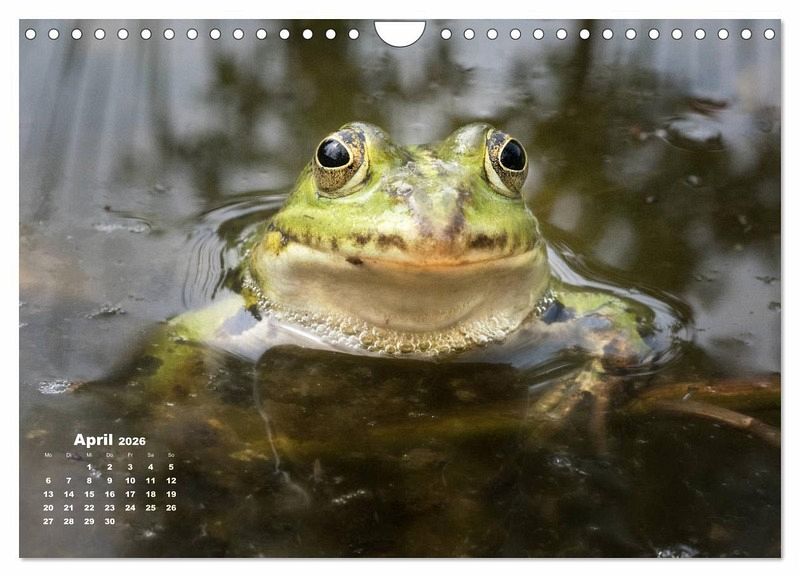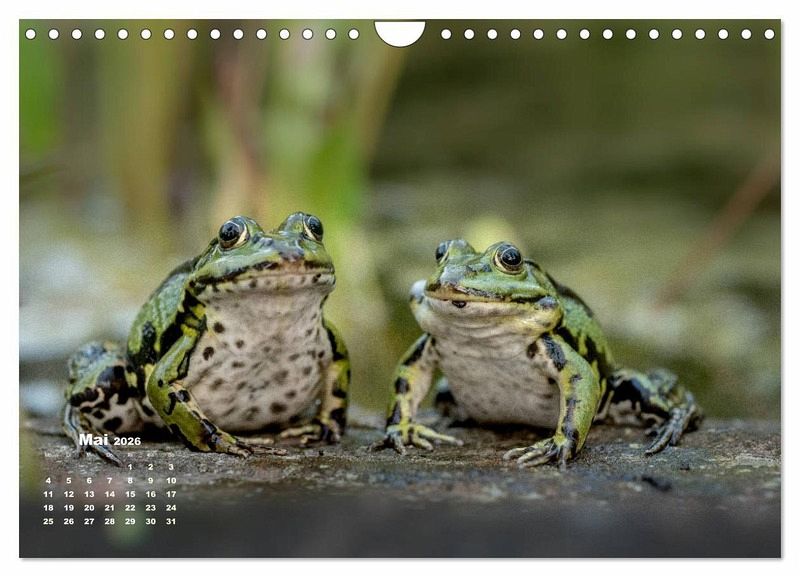 So haben Sie unsere heimischen Frösche noch nie gesehen. Aussergewöhnliche Nahaufnahmen der kleinen, grünen Gesellen begleiten Sie in diesem Kalender durch das Jahr.