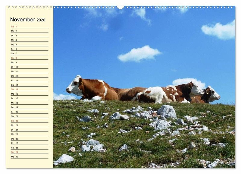 Sie lieben Wiesen, die große Freiheit auf einer Alm und das Leben in einer funktionierenden Herde. Glückliche Kühe, die ständig frische Luft und saftiges Gras genießen dürfen, sind eine Augenweide für jeden Naturfreund. Ein schöner Planer für die gesamte Familie.