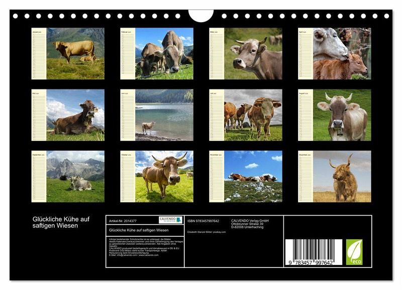 QUALITÄT - Hochwertiger Fotokalender mit12 wunderschönen Motiven auf lichtbeständigem Bilderdruckpapier, robuste Spiralbindung mit Aufhängebügel.NACHHALTIG - deutliche Abfallreduzierung durch bedarfsgerechte Einzelstückfertigung, umweltfreundliches FSC-zertifiziertes Papier, Produktion in Deutschland, klimabewusste Logistik.PERFEKTES GESCHENK - Kalender für Freunde und Familie, für Kinder und Erwachsene, jung und alt, zu Weihnachten, Geburtstag oder zwischendurch.VIELFALT - Bildkalender in verschiedenen Formaten, z.B. DIN A5, DIN A4, DIN A3 sowie DIN A2. Ob Naturmotiv, Gemälde oder Fotos, ideal für ein persönliches Wohlfühlambiente.Kühe, die das Leben genießen dürfen von Autor(in): Elisabeth Stanzer