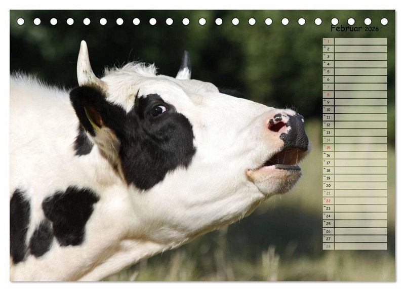 Lassen Sie sich von den liebenswerten, gemütlichen und vor allem glücklichen Kühen der verschiedensten Rassen durch das Jahr begleiten. Und behalten Sie dabei Ihre Termine im Blick.